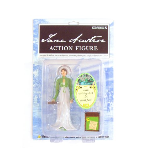 Own a female action figure that changed history! Jane Austen was one of the greatest English novelists in history. Despite a rather sheltered life, she was able to capture the subtleties of human interaction so perfectly that her novels continue to be immensely popular to this day. This 5-1/4" (13.3 cm) tall, hard vinyl action figure comes with a book (Pride & Prejudice) and a writing desk with removable quill pen!