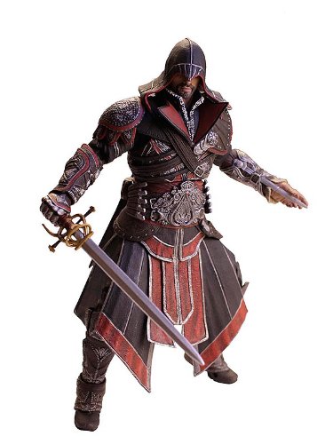 Highly detailed figure with over 30 points of articulation Figure stands nearly 7" tall and comes with interchangeable hands and a sword accessory. Each figure features retractable blades on the gauntlets to re-enact Ezio's stealth attacks.