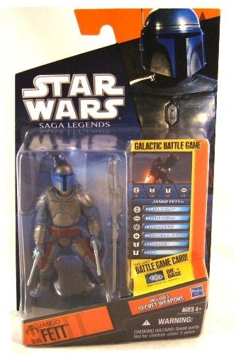 An â??intergalacticâ? battle is raging â?" and you and your Jango Fett action figure are about to enter the fray! Arm your warrior with his secret weapon accessories so that heâ?TMs ready to charge into combat against his fiercest enemies. Whether fighting for the fate of the â??universeâ? or standing at attention in your collection, this awesome action figure puts all of the excitement of the Star Wars saga right in the palm of your hand!