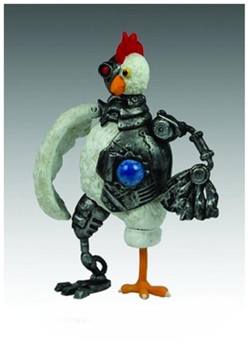 Its alive! Robot Chicken comes to life with the 10 Electronic Robot Chicken. Just press the blue sphere on the left of her stomach and watch as Robot Chickens eyes light up and sound effects emerge all at the same time! Love to watch the show, now your favorite cyborg can join you!